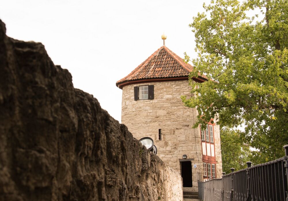 Ein herrliches Panorama Mühlhausens und der Umgebung bietet sich von der Aussichtsplattform des Rabenturms (34,2 Meter).