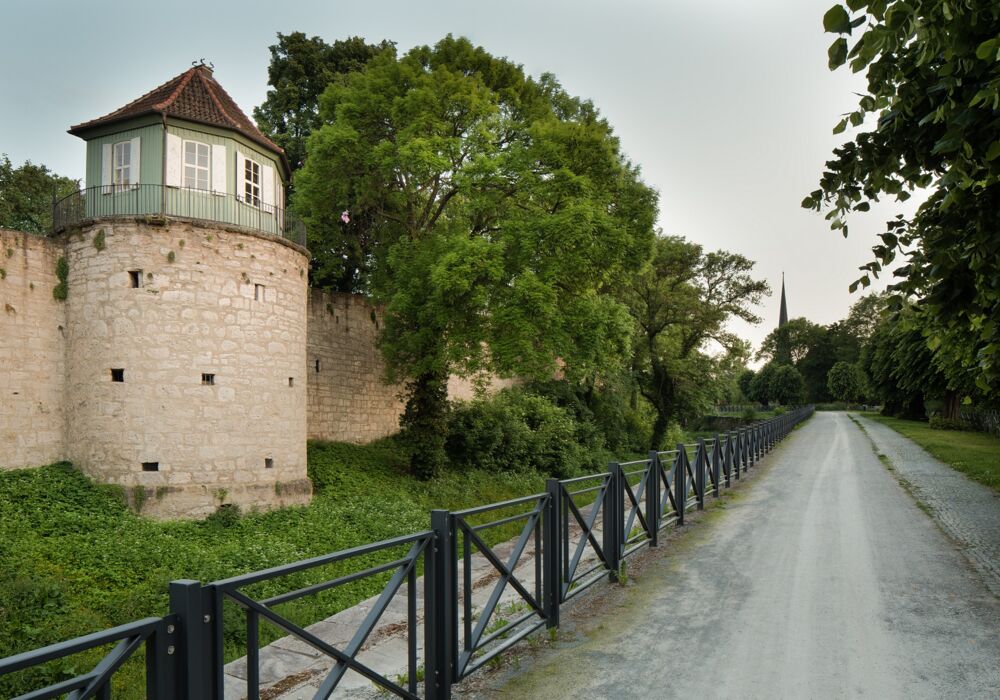 Mühlhausen gehört zu den wenigen Städten, die noch über einen nahezu vollständigen mittelalterlichen Stadtmauerring verfügen. Von den ursprünglich 2,8 km Länge haben sich 2,2 km und eines von vier Haupttoren – das Innere Frauentor – erhalten. Von der Stadtseite dieses Tores aus können die museal gestalteten Befestigungsanlagen über eine Länge von 370 Metern besichtigt werden.